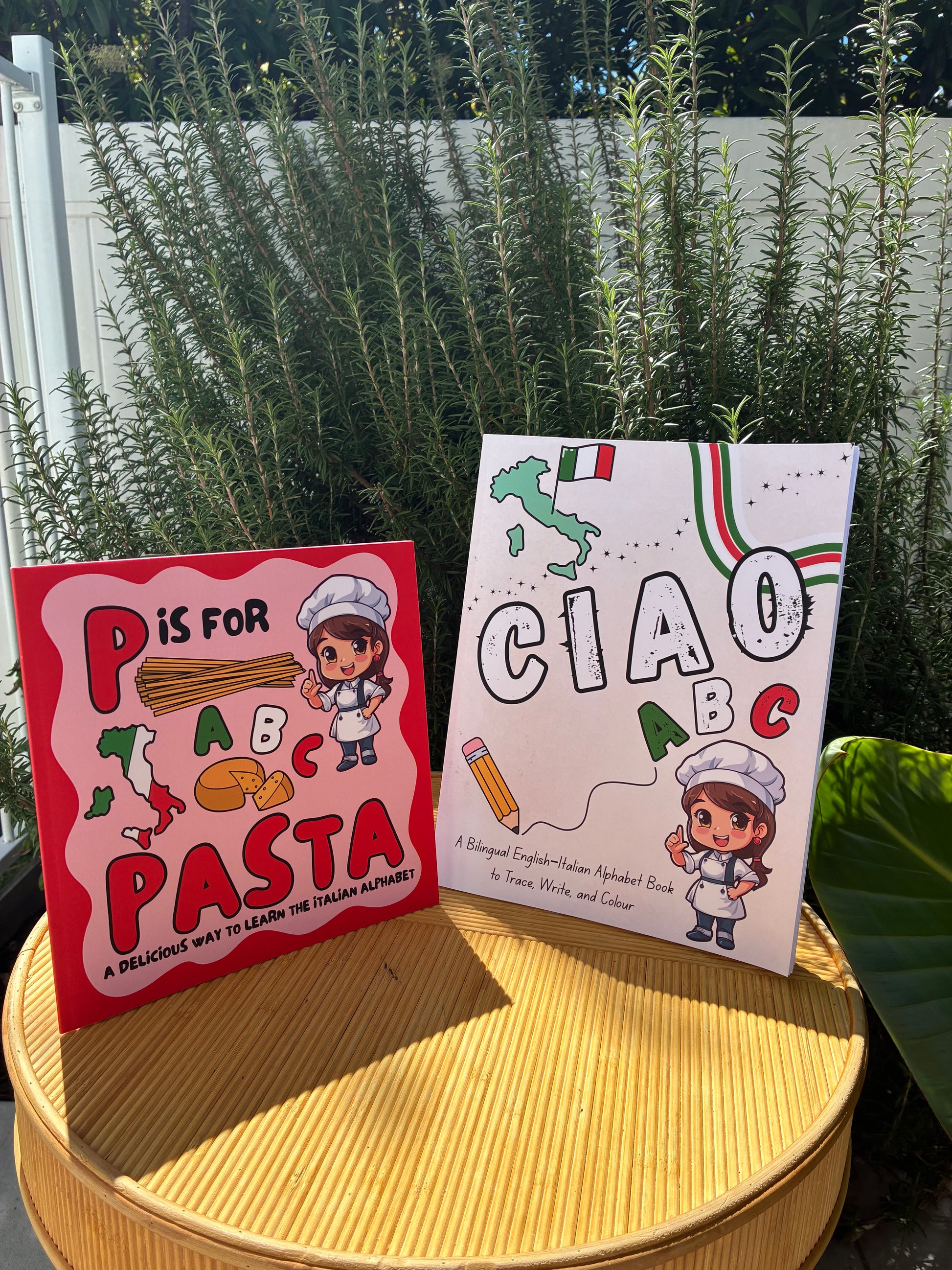Discover the joy of learning Italian with P is for Pasta and Ciao ABC! This delightful two book pack introduces children to Italian words, letters, and culture in learning the Italian alphabet and is paired with vibrant illustrations. Perfect for little learners beginning their language journey — a fun and engaging way to say "ciao" to Italian!